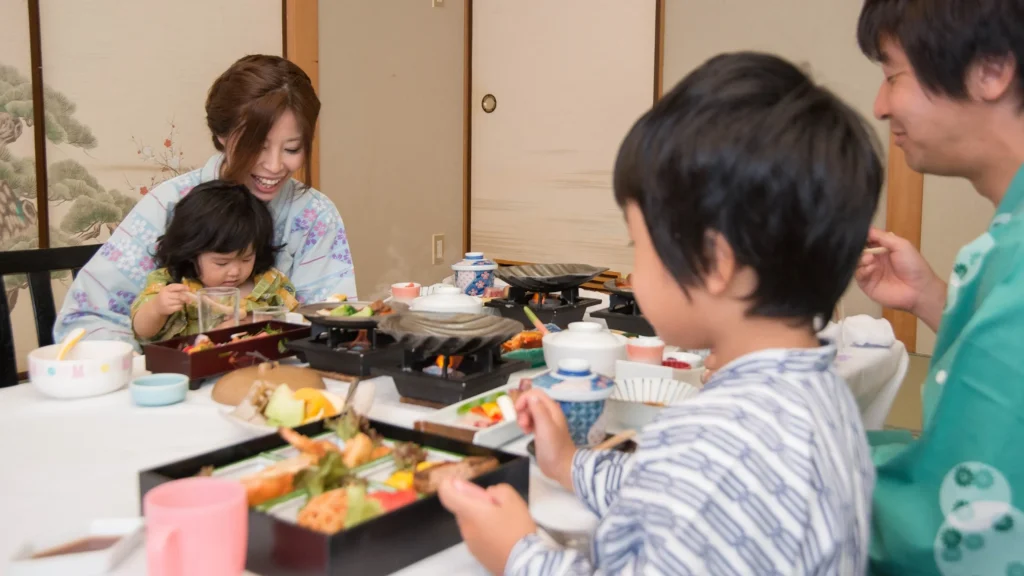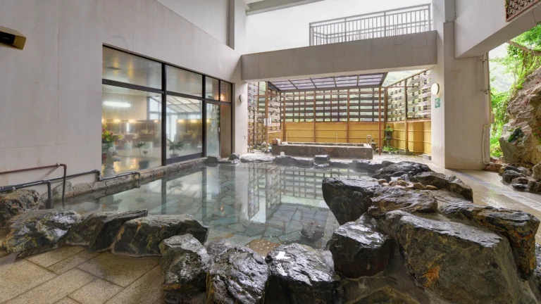 渓流を望む大浴場・露天風呂で大人もリラックスできるほか、和会席料理や部屋食プランもあり、静かな空間で食事と温泉を堪能できる。周辺観光へのアクセスも良く、大人の滞在満足度も高い。