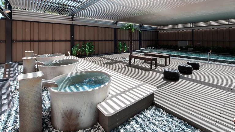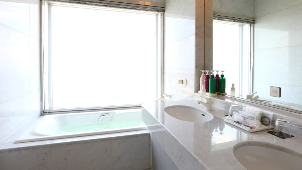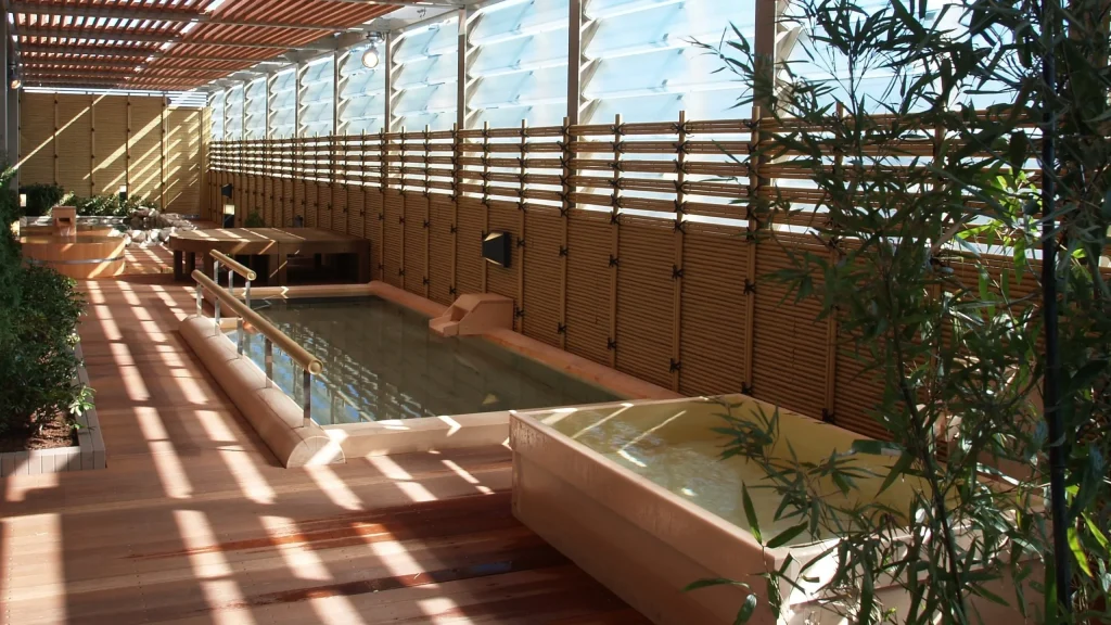 館内はバリアフリー設計で通路やエレベーターが整い、ベビーカーでの移動もしやすい。大浴場やプール周辺は監視や安全表示があり、共用エリアも広く安全性に配慮されています。ただし高層階利用や混雑時は保護者の見守りが必要です。