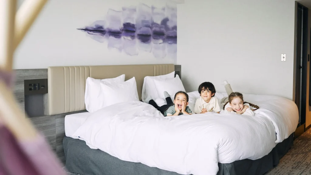 ラウンジではドリンクや軽食を楽しめ、温泉露天風呂やサウナでリラックス。景観の良い客室で静かな時間を過ごしつつ、家族のアクティビティ拠点としても快適な滞在が可能。