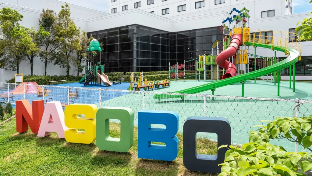 子供向けアクティビティ 屋内キッズスペース「NASOBIBA」、屋外アスレチック「NASOBO」、キッズゾーン、遊具、長滑り台など