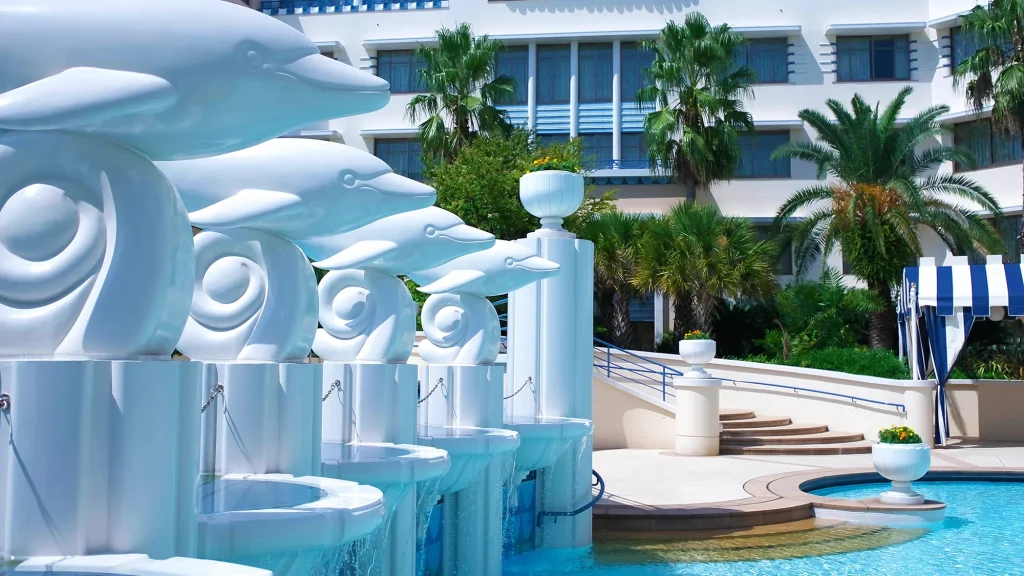 ディズニーアンバサダー®ホテルは1930年代アールデコスタイルのインテリアとディズニーキャラクター溢れる、大人も子どもも楽しめるオフィシャルホテル。パークへの無料シャトルバス「ディズニーリゾートクルーザー」でアクセス抜群。館内にはキャラクターダイニング「シェフ・ミッキー」、ゲームセンター、季節限定プールなど滞在を彩る施設を完備し、家族旅行や記念日の宿泊にも最適なホテルです。