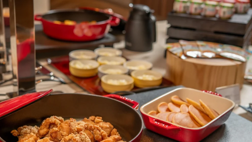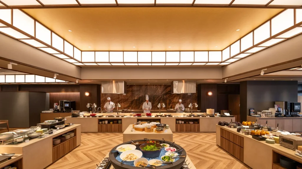 館内は大型ホテルながら落ち着いた造り。段差がある場所もあるが、客室や共用施設は整備されており、小さな子ども連れでも比較的安心。温泉設備も大浴場・露天があり監視はあるが、幼児の利用には保護者の付き添いが必要。