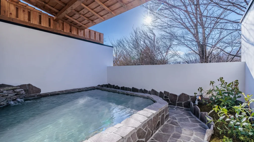 仙石原 品の木一の湯は仙石原高原の静かな自然に囲まれ、全室に露天風呂を設けた温泉旅館。大涌谷温泉やアルカリ単純泉の内湯など多様な湯処を備え、ゆったり湯巡りが楽しめる。季節の旬食材を活かした和会席料理でも評判が高く、家族やカップル旅行にも対応する上質な癒しの滞在を提供する。
