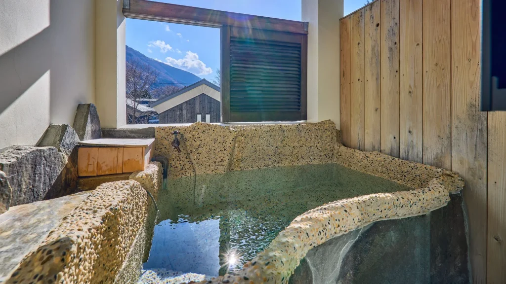 全室露天風呂付きの贅沢な客室と多様な湯めぐりでリラックスできる。料理は季節の会席や地元食材を活かした献立が魅力。周辺の観光名所も徒歩圏内か車で短距離で、温泉と観光を両立できる快適な滞在が叶う。