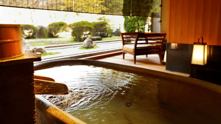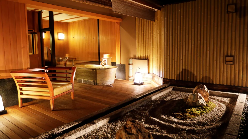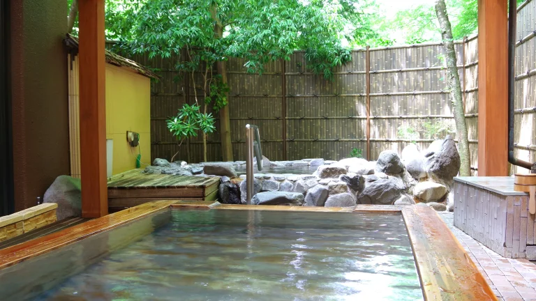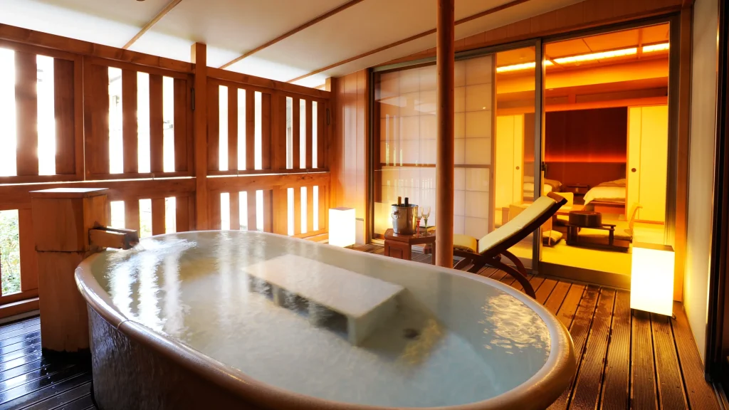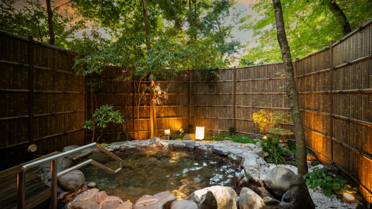 湯本の森に佇む温泉大浴場と露天風呂の宿