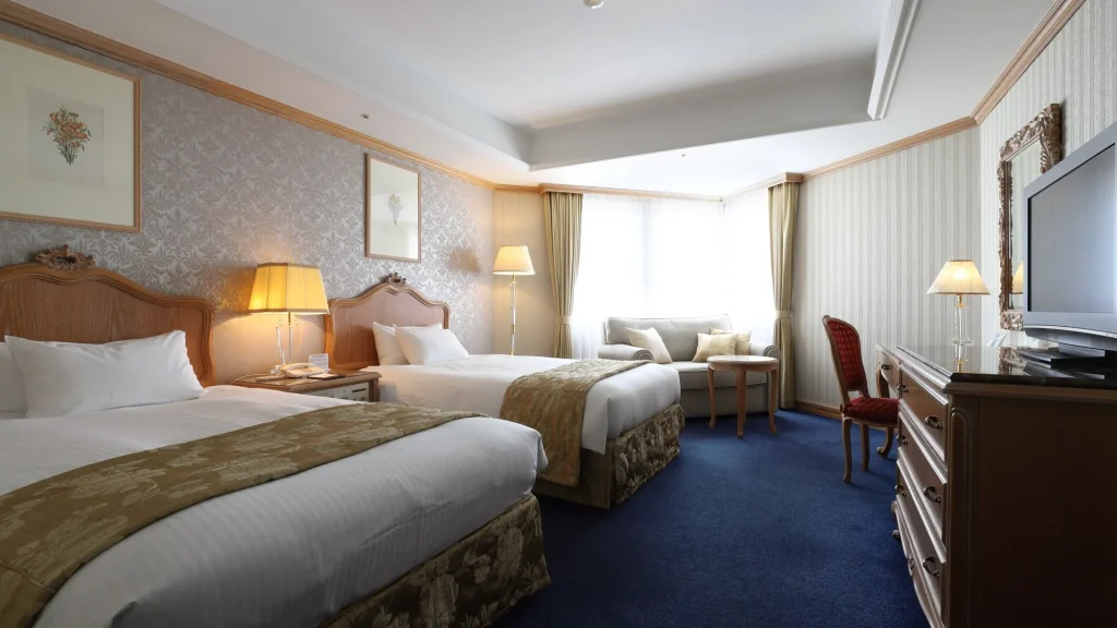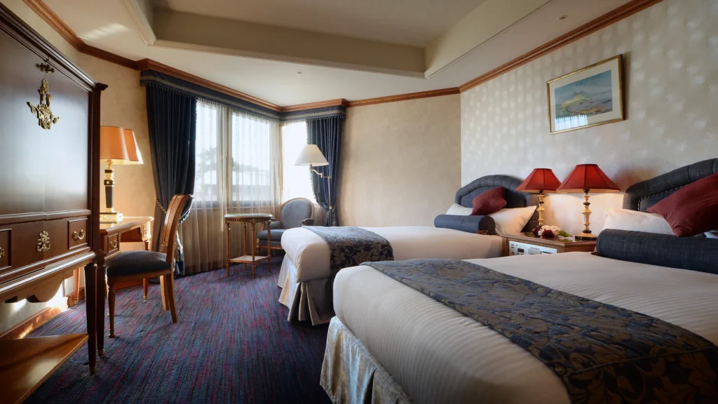和洋室や広めの客室があり、靴を脱いで過ごせる部屋も選択可能。騒がしすぎない環境で、赤ちゃんや幼児も落ち着いて滞在できる。観光中心の滞在スタイルに適している。