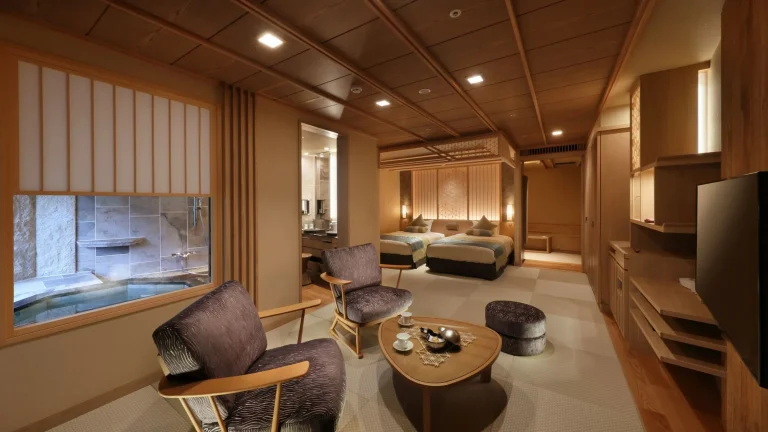 鬼怒川温泉を代表する老舗温泉ホテルで、歴史ある趣と現代的な快適さを融合。客室は和洋室・和室・露天風呂付きなど多様で、渓谷や山並みの景色を楽しめる。ブッフェレストランは100種類以上の和洋中メニューを揃え、子供向け料理や食器も対応。館内にはキッズルーム、ゲームコーナー、卓球、プール等のアクティビティが豊富で、家族連れの滞在に適した温泉リゾートホテル。
