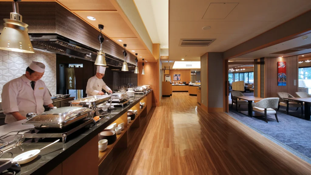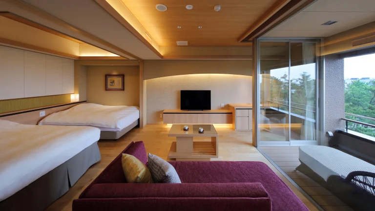 館内はバリアフリー対応の客室や通路がありベビーカー移動も一定の配慮あり(公式バリアフリー情報あり)。露天や温泉施設利用時は滑りやすさに注意が必要だが、落ち着いた湯宿で家族連れでも安心して過ごせる環境が整っている。