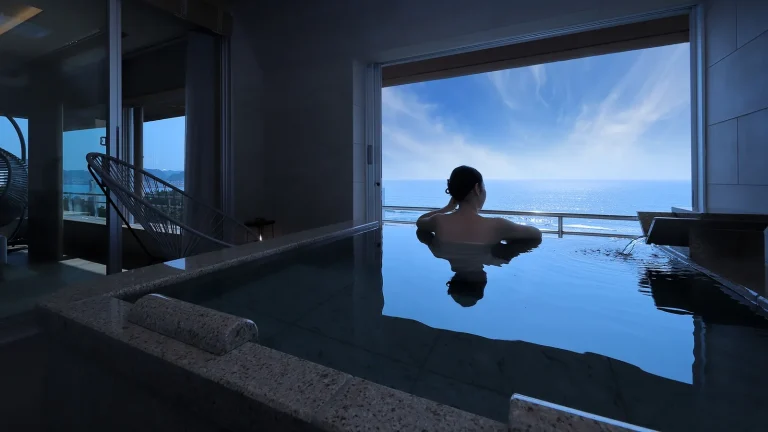 露天風呂や大浴場で温泉三昧を楽しめるほか、季節の会席料理や個室食事処でゆったりと食事を堪能できる。客室は海を望む造りやリニューアルされた設備があり、大人も落ち着いた旅の時間を過ごせる。周辺観光地へのアクセスも良好。