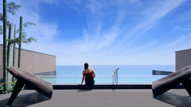 太平洋を望む房総の海辺に立地する老舗温泉宿。2019年にリニューアルし、里山の湯を引いた大浴場「潮騒の湯」と、露天温泉付き客室を含む多様な客室を用意。旬の海山の素材を生かした会席料理を個室や客室で楽しめ、屋上の温泉「HARUKA」では海と一体化する開放感を味わえる。鴨川シーワールドへ徒歩圏内で観光拠点としても便利。