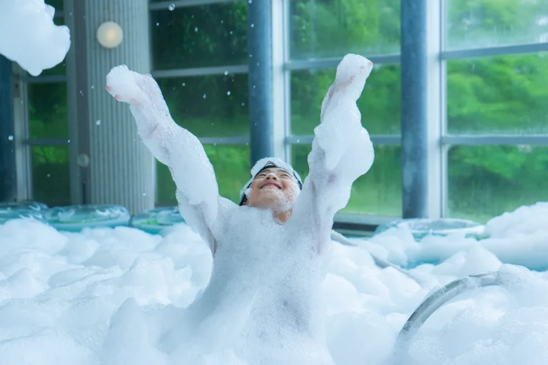 水着スパ、自然散策、季節イベント、ワークショップなど体験型コンテンツが中心。森の中での非日常体験や焚き火・アウトドア要素が子どもにとって特別な思い出になりやすい。